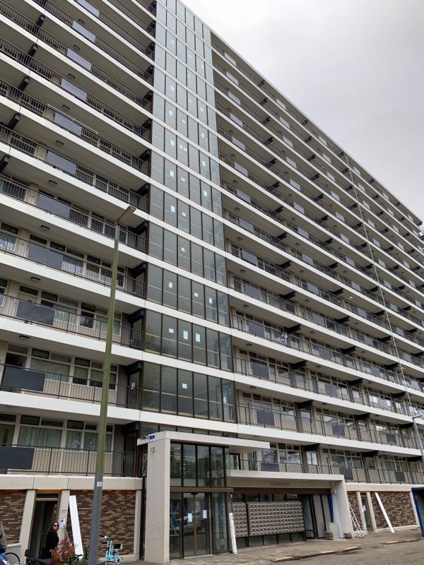 In Rotterdam wordt er druk hard gewerkt om de laatste puntjes op de i te zetten om het renovatie project Stresemanflat gereed te krijgen. In dit project was Alwiti B.V. verantwoordelijk voor het afsluiten van het trappenhuis door middel van de galerij dichtzetten en aan weerszijde automatische draaideuren. Op de kozijnen werden houten leuningen gemonteerd en rondom werd alles afgewerkt met aluminium zetwerk dit alles in de geanodiseerde kleur AluBrass. Op de begaande grond werd de entree volledige gerestyled en gemoderniseerd.